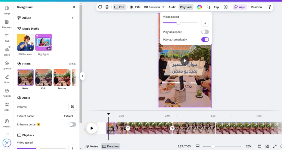 If your speech pace is too slow, use the speed-up feature. Explore the application’s other editing options until you achieve the look you want.